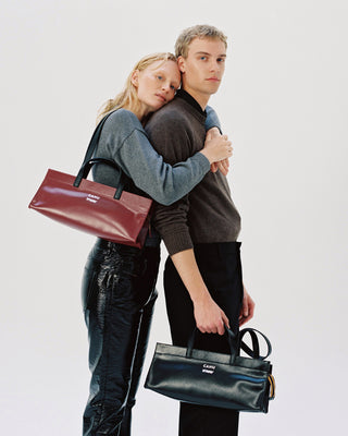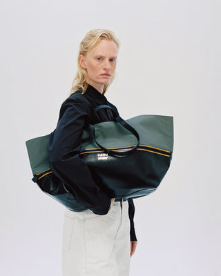 The collaboration revolves around a key detail: K-WAY's iconic zipper, which becomes a structural element of the design. Positioned at the center of the bag, it merges the two materials while remaining visible both inside and out, showcasing the technical expertise of both brands. This approach introduces unprecedented modularity, allowing for playful combinations of colors and formats.