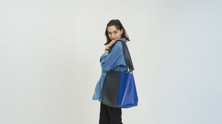 This limited edition highlights an XXL version of the "BUCKETSU", equipped with an inner pocket, eyelets, and rings for the shoulder strap, allowing it to be carried on the shoulder or crossbody. Dubbed "LE DIAGONAL" at CAHU, this model stands out for its duo of colors and materials, offering imposing proportions. A robust and unprecedented collaboration.