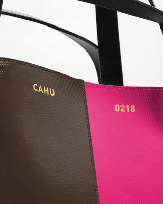 Conceived as a graphic playground, each Bigoût reveals the architecture of the CAHU bag: the line becomes a boundary, the stitching a dialogue.